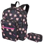 Kit Mochila Paul Frank Escolar Juvenil Costas Macaquinho Macaco Tam G
