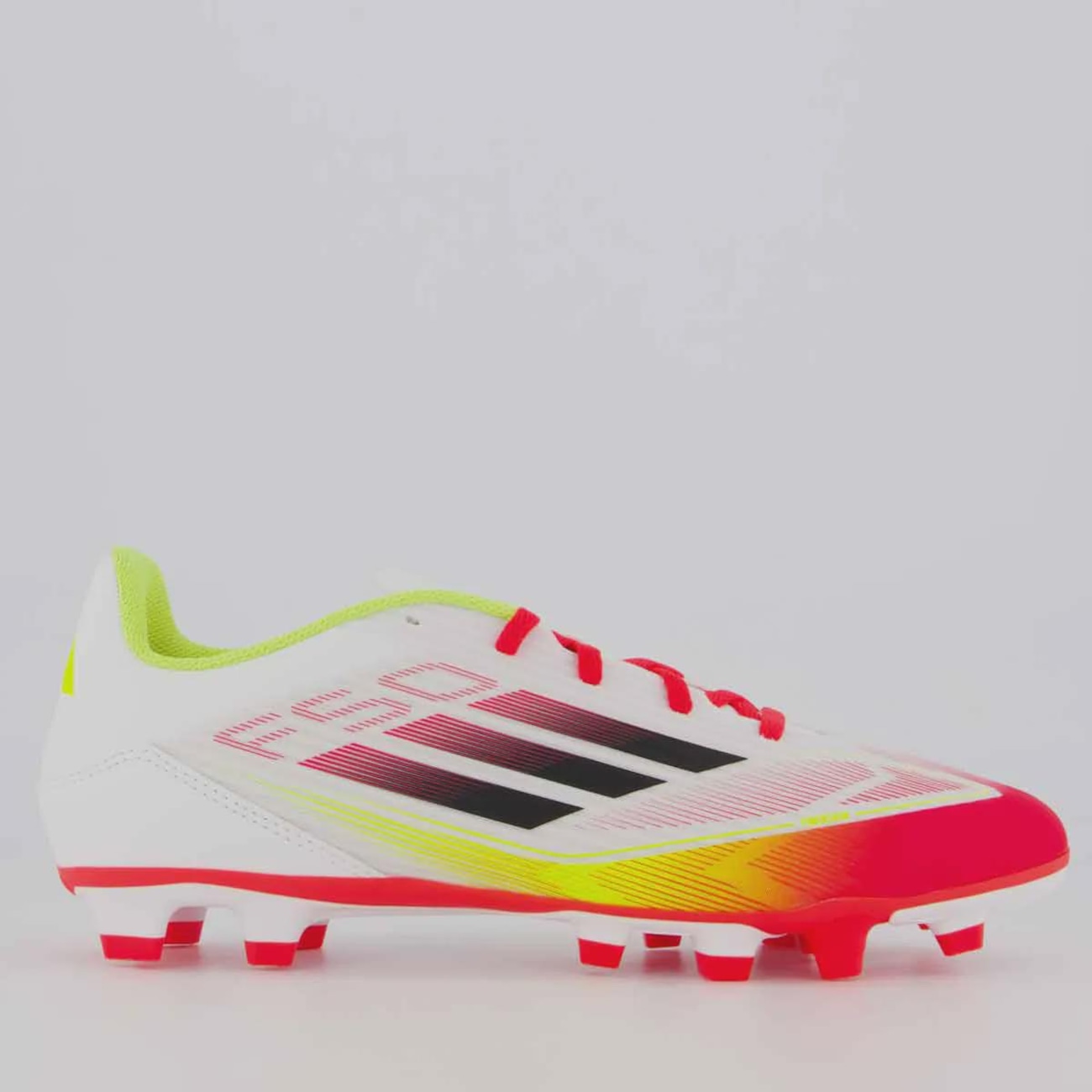 Chuteira Adidas F50 League FG/MG Campo Branca e Vermelha