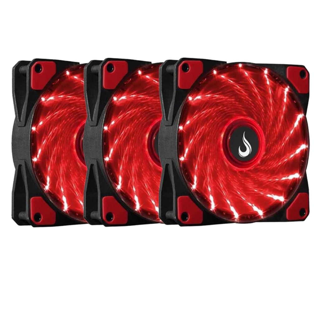 Kit 3 Cooler Fan Led Vermelho 120mm 12v 1500rpm Ventoinha para Pc Gamer Rise Mode