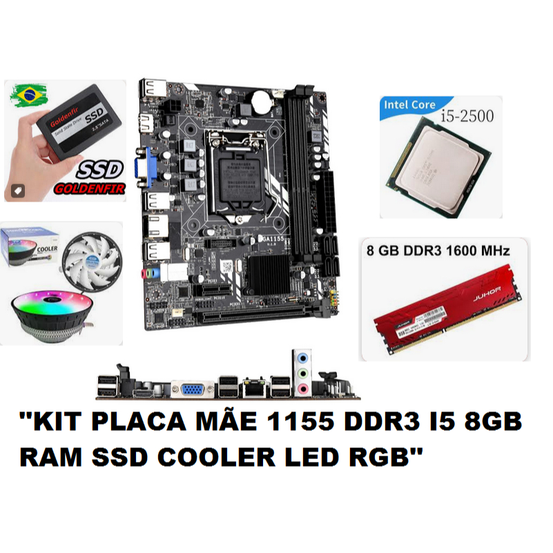 Kit Upgrade - Intel Core I5 2500 8GB RAM Ssd 120GB (W10 Pro Office 2019) DDR3 Placa Mãe Lga 1155