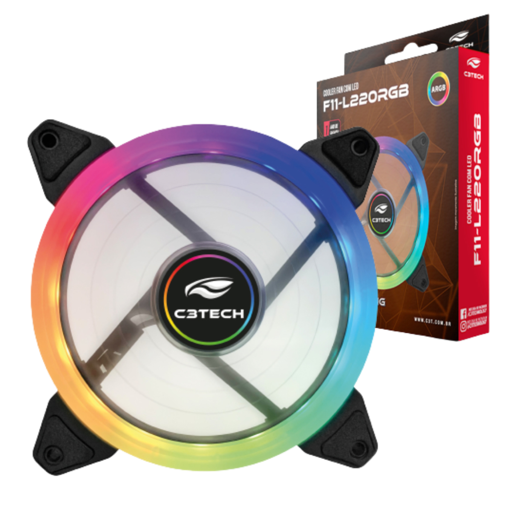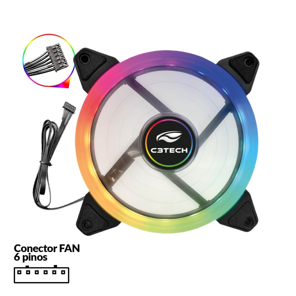 Fan Cooler Argb 6 Pinos Single Ring 120mm 12cm Controlavel F11-L220RGB C3Tech Gamer