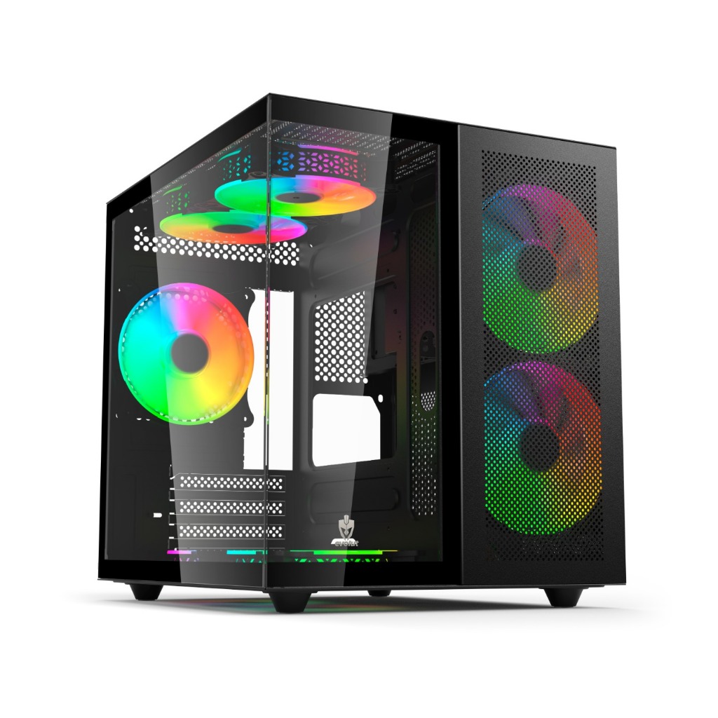 Gabinete Aquário Gamer Hyrax, Mini Tower, mATX, Frente e Lateral em Vidro Temperado, Preto - HGB730B