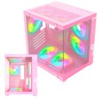 Gabinete Grodd Candy Aquário Gamer Cor Rosa Suporta Até 7 Fans e Water Cooler Com Vidro Temperado