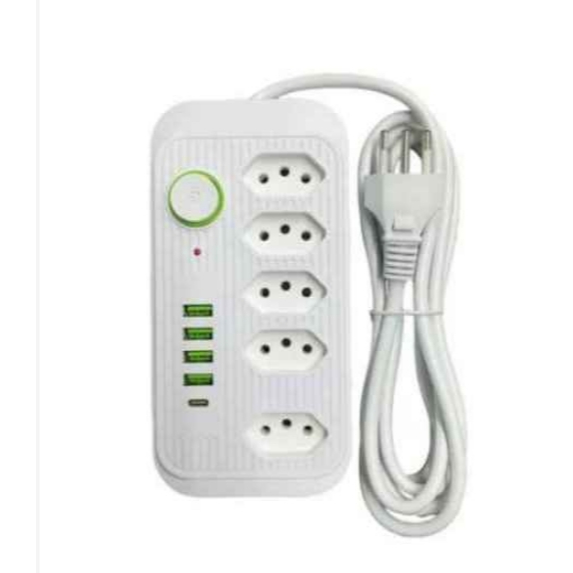 Filtro De Linha Clamper Extensão Cabo Extensor 5 Tomadas + 4 USB E 1 USB Tipo C bivolt t-0143