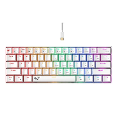 Teclado mecânico gamer Havit KB903l - Tamanho 60% Usb C Switch vermelho e branco Idioma inglês EUA