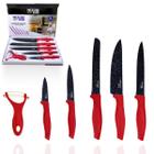 Kit De Facas E Descascador Profissional Inox Antiaderente Vermelho/Preto 6 Peças Premium