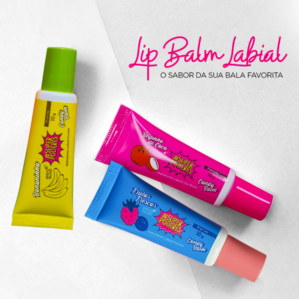 Hidratante Candy Lip Balm Labial Gloss Protetor Lábios Make Sabores Super Poderes 10g