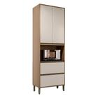 Paneleiro Torre Quente com 2 Portas 2 Gavetas e Espaço para Micro-ondas 100% Mdf Vicenza Espresso Mó Amêndoa/Branco
