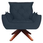 Poltrona Opala Base Giratória De Madeira Amamentação Suede Azul Marinho D'Rost