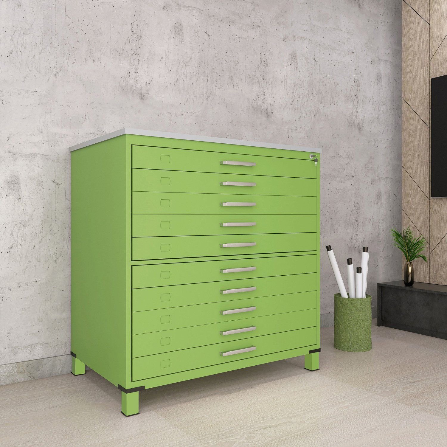 Gaveteiro Mapoteca para Escritório de Aço Fixa com 10 Gavetas Industrial