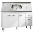 Balcão Gabinete com Pia Inox 150cm 4 Portas 2 Gavetas Branco - Branco