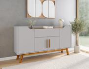 Aparador Buffet 4 Portas Pés de Madeira Retrô para sala de jantar 100% MDF Eva Cimol Off White/Nature