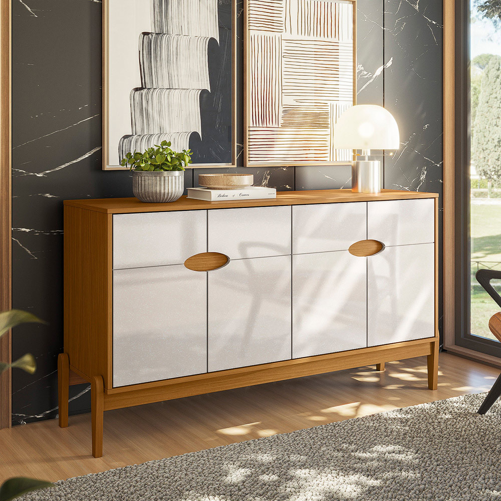 Aparador Buffet 4 Portas Pés de Madeira Retrô para sala de jantar Eva Cimol Móveis Off White/Nature