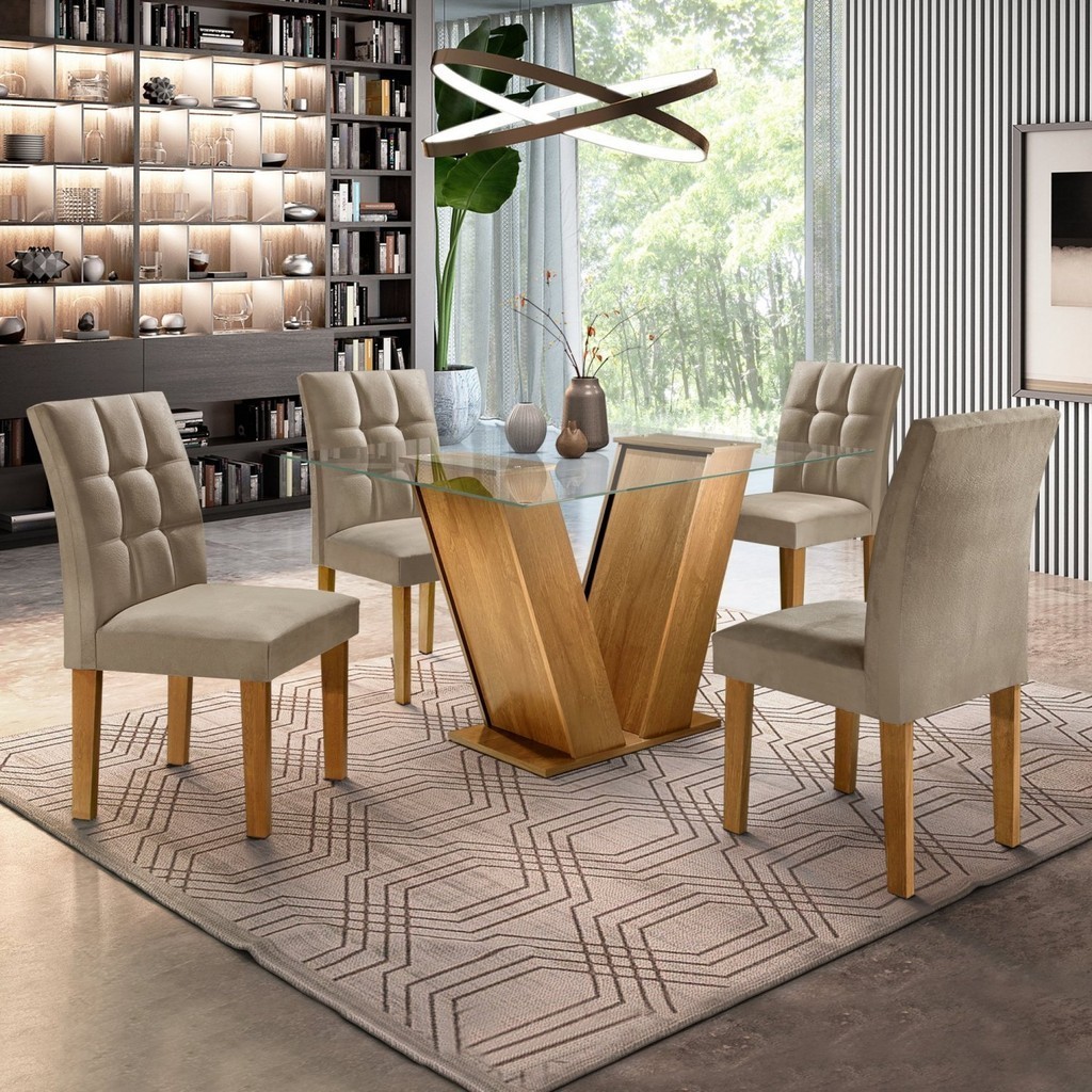Conjunto Sala de Jantar Mesa Sevilha I Tampo de Vidro 4 Cadeiras Vitoria Yescasa