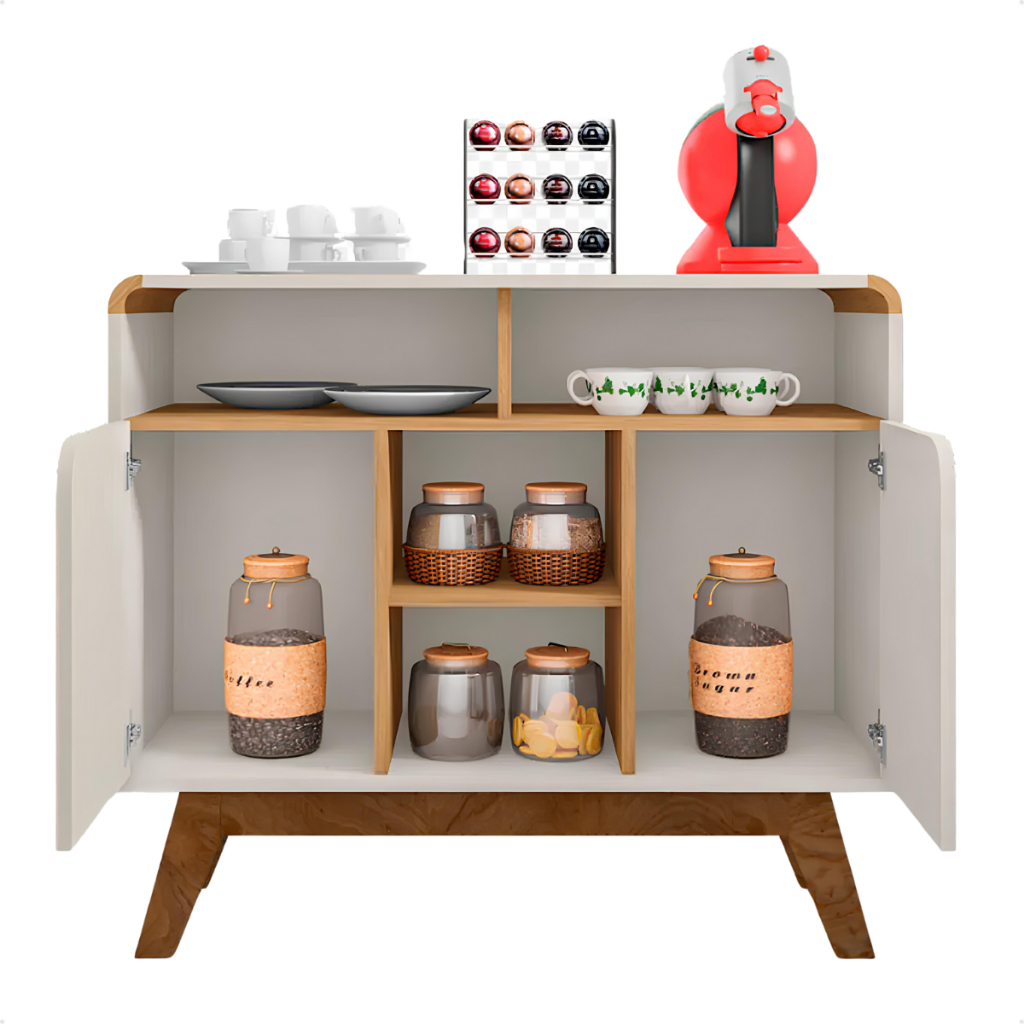 Aparador Buffet Cantinho do Café 2 Portas Para Sala de Jantar e Cozinha Com Pés de Madeira Retrô