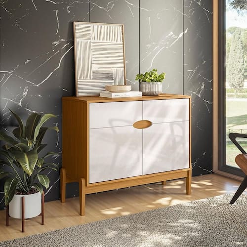 Aparador Buffet Intense 2 Portas Retrô com Pés de Madeira Freijó / Off White Perolizado -