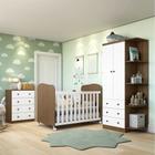 Quarto de Bebê Completo com Guarda Roupa, Cômoda e Berço 100% MDF Jolie Retrô Espresso Móveis Branco Brilho/Carvalho Espresso Móveis