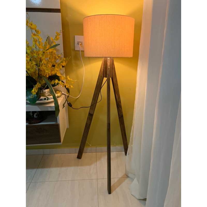 Abajur De Chão Tripé 1,55m Rústico Completo Com Cúpula Tecido E Fiação Luminária De Piso Retrô Moderna Para Decoração Sala e Quarto