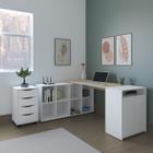 Escrivaninha em L com Balcão 2 Portas 1 Gaveteiro 4 Gavetas Artany