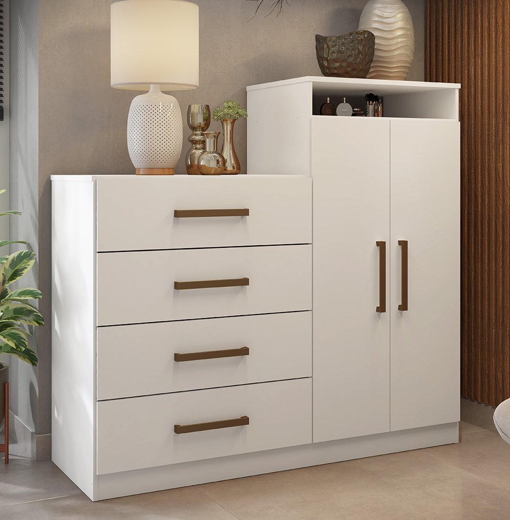 Cômoda de Quarto Áurea c/ 2 Portas e 4 Gavetas Casal - Branco - Demóbile