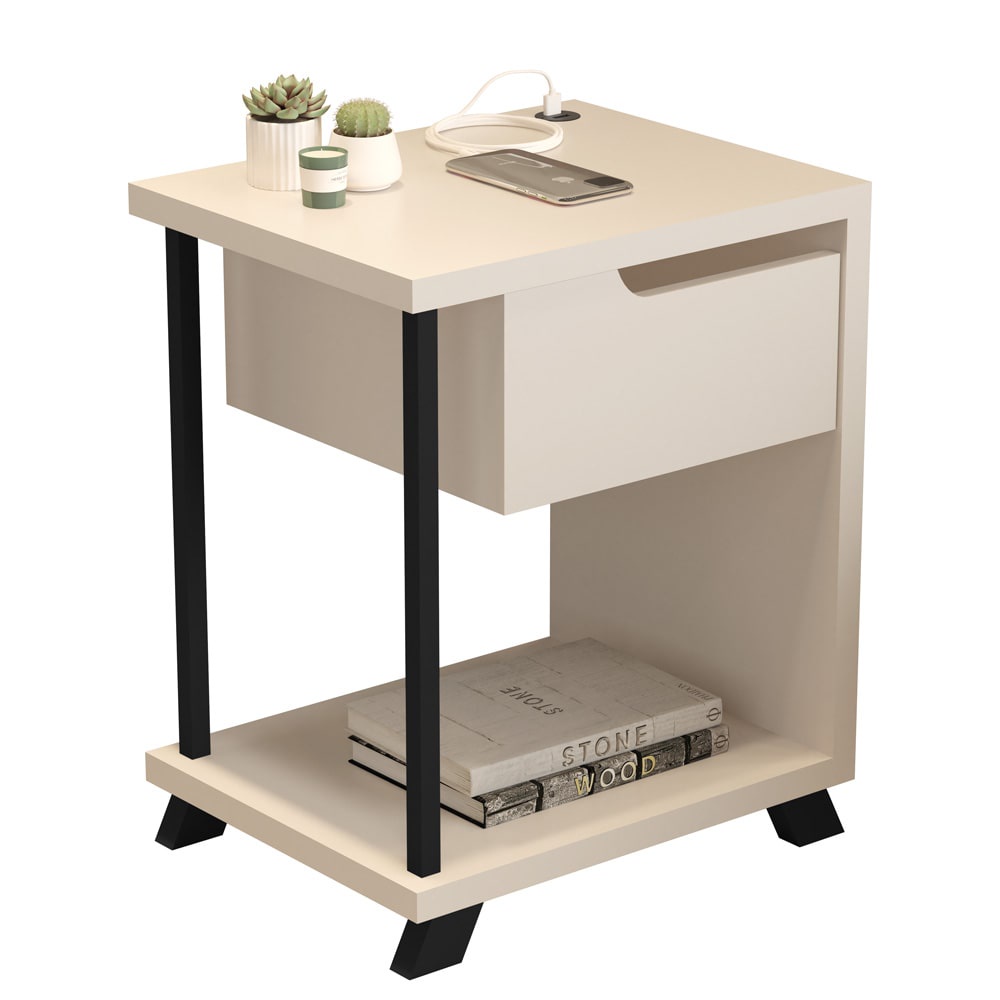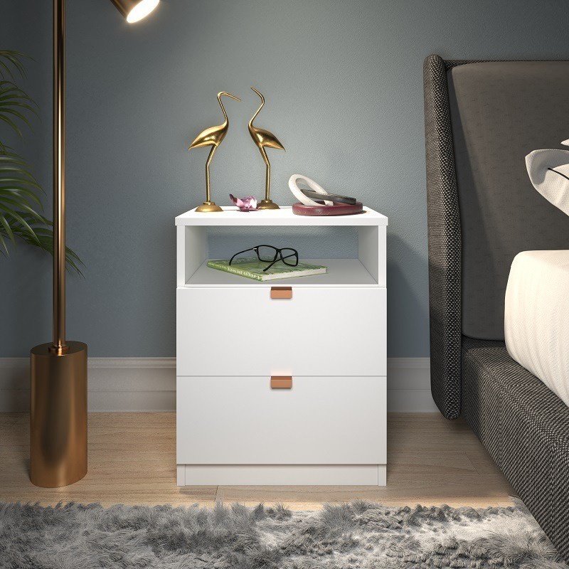 Mesa de cabeceira 2 gaveta-criado mudo com chave branco e preto para sala quarto nicho pequeno moderno-industrial