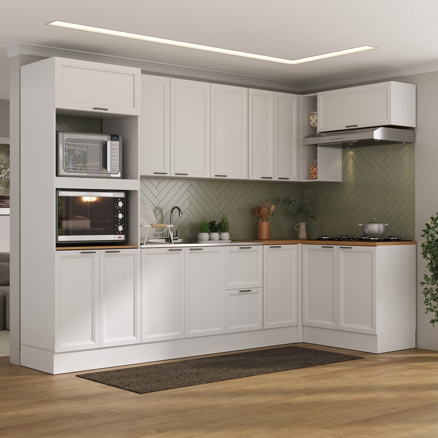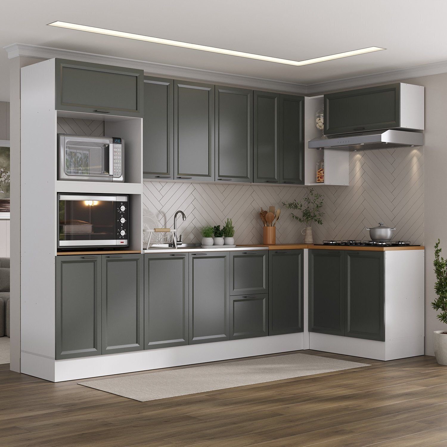 Cozinha Compacta 7 Peças 3 Aéreos 3 Balcões 1 Paneleiro Torre Quente Soho CabeCasa MadeiraOriginals