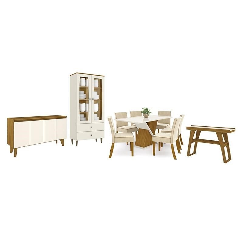 Conjunto para Sala de Jantar com Buffet e Cristaleira Reflecta Elegance Off White/Naturalle - Marrom