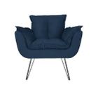 Poltrona Decorativa Para Sala de Estar Com Pés de Ferro Opala Suede Azul Marinho - LM DECOR