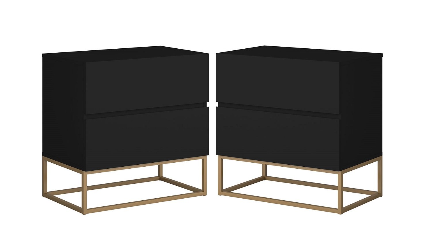 Kit 2 Mesas De Cabeceira 45cm Eros 2 Gavetas com Corrediças Telescopicas e Pés De Ferro