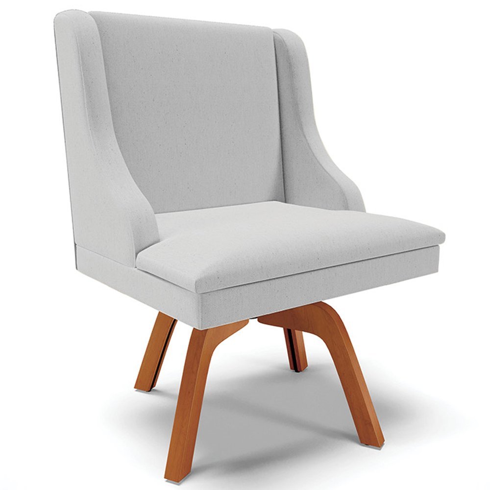 Poltrona Decorativa Eros Linho Base Giratória De Madeira - Linho Bege