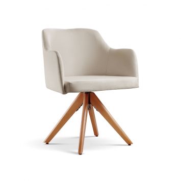 Poltrona para Escritório c/ Base Giratória Madeira Silvia Linho Bege/Facto Marrom