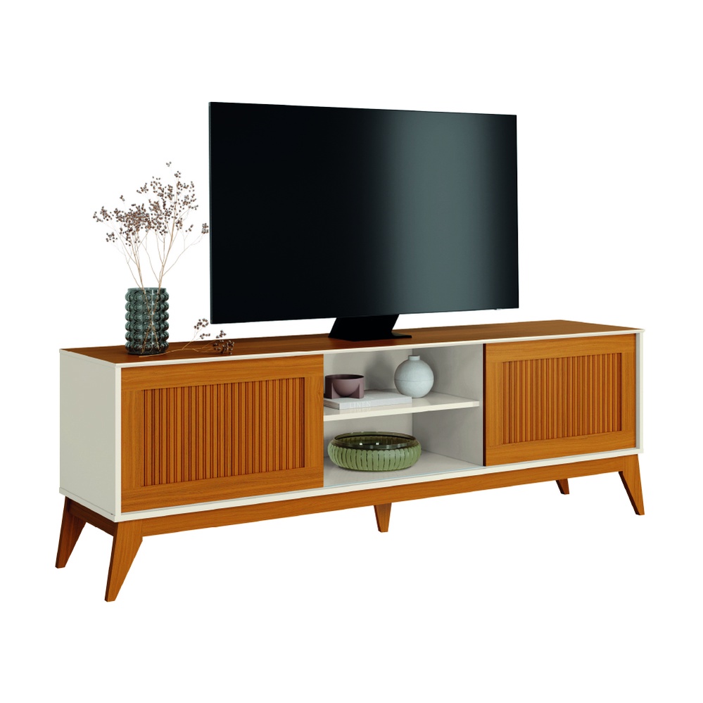 Rack Bancada para TV até 65 Polegadas 1,80m Ripado Impressão 3D 2 Portas Cedro / Off White King EDN