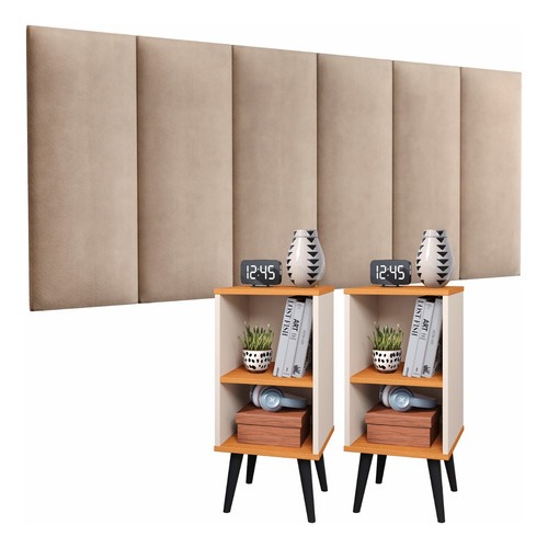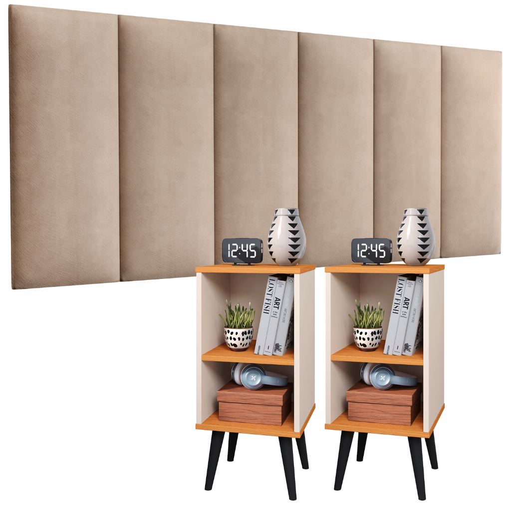 Conjunto 2 Mesa De Cabeceira E Cabeceira Estofada Cama Casal kit quarto conjunto mesa de cabeceira