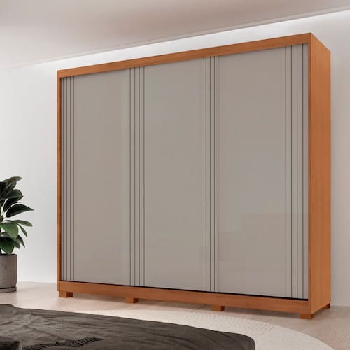 Guarda-roupa Casal 100% Mdf 3 Portas de Correr 4 Gavetas e Espelho Chile