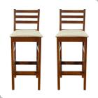 Kit 02 Banqueta Alta Estofada Bistrô Cozinha Bancada Tecido Linho Madeira Maciça Eucalipto