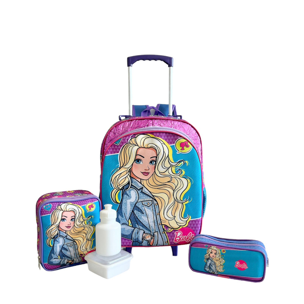 Kit Mochila Escolar Infantil Barbie G Rodinhas Meninas F5