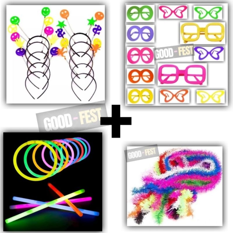 Kit 130Un Óculos + Tiaras + Marabu 75cm + Pulseira Neon , Festa , Aniversário, Balada , Casamento , 160un , 190un