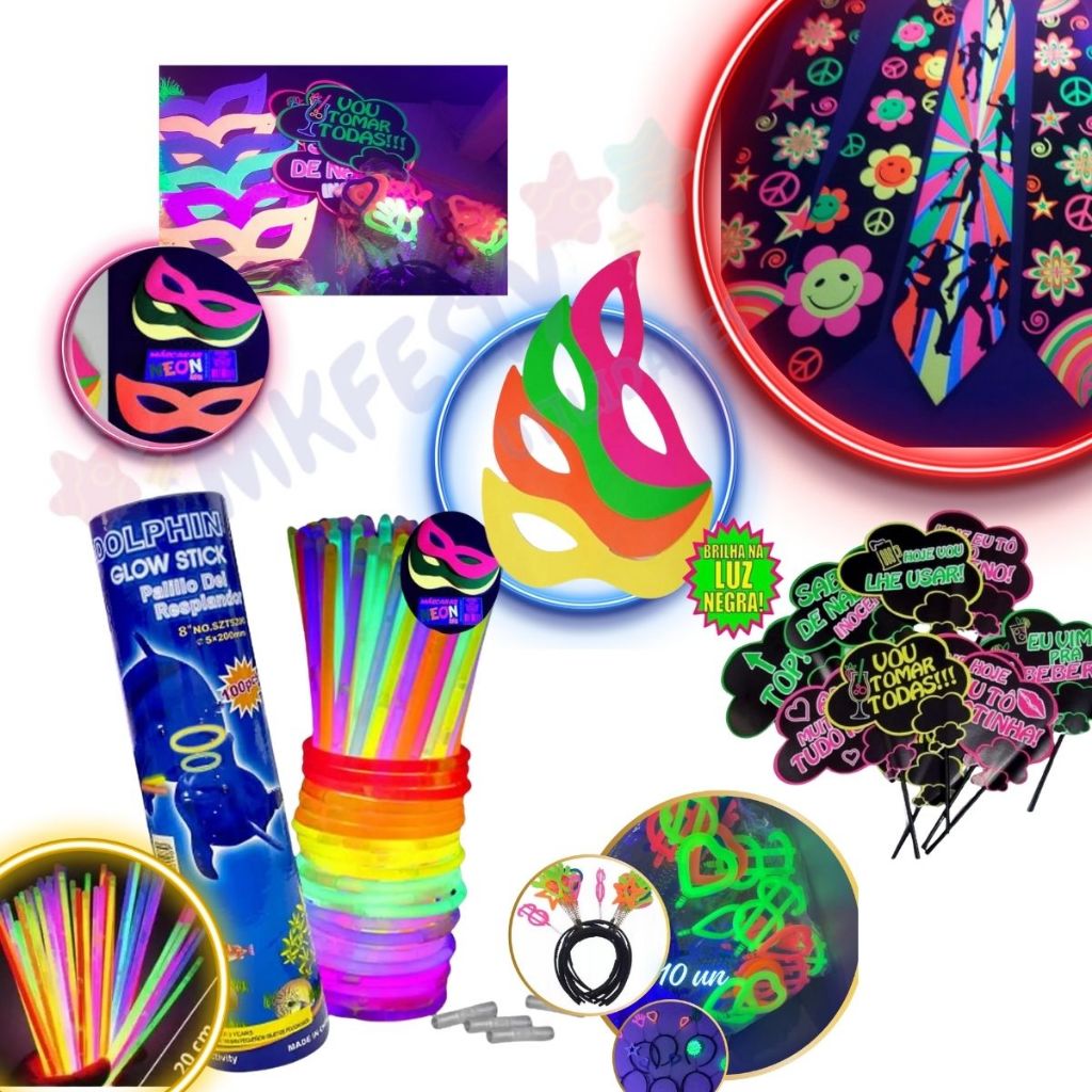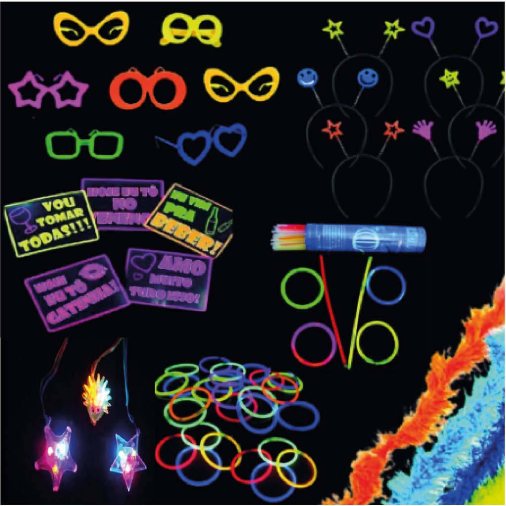 Kit adereços para animar festa balada neon 170 itens casamento formatura debutante