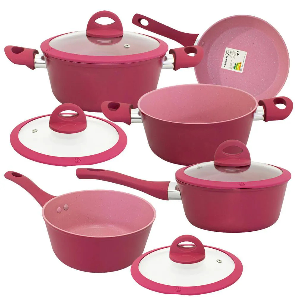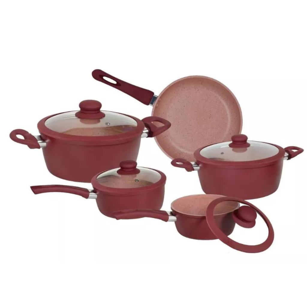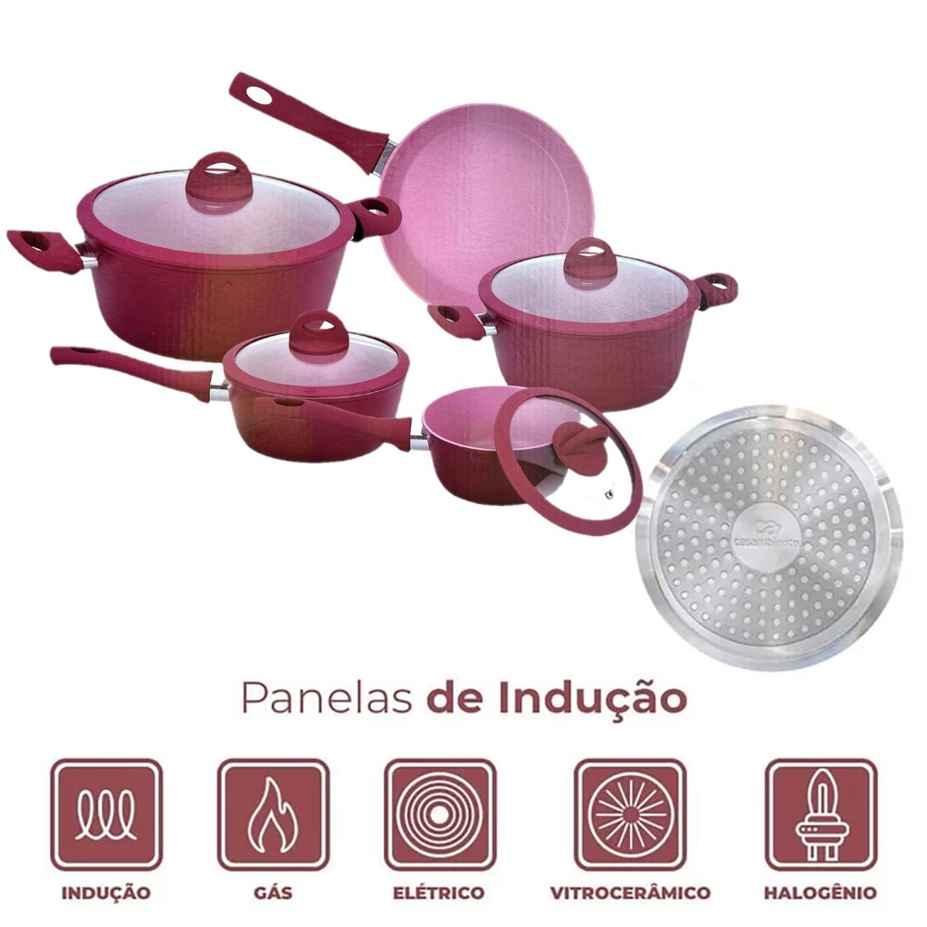 Jogo de Panelas Antiaderente Cerâmica de Indução 5 Peças Viena Vinho Plus - Casambiente
