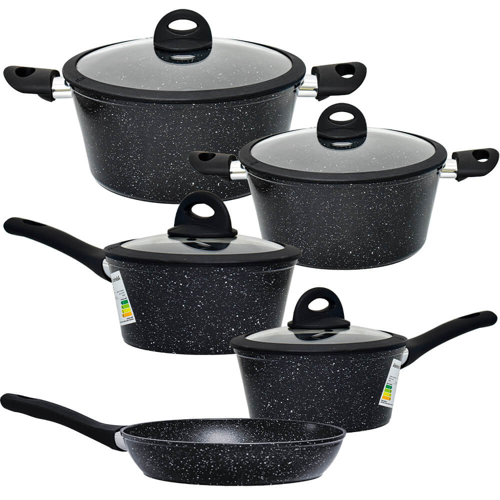 Jogo de Panelas Viena Preto 5 Peças Revestimento Cerâmica 4,5mm - Casambiente