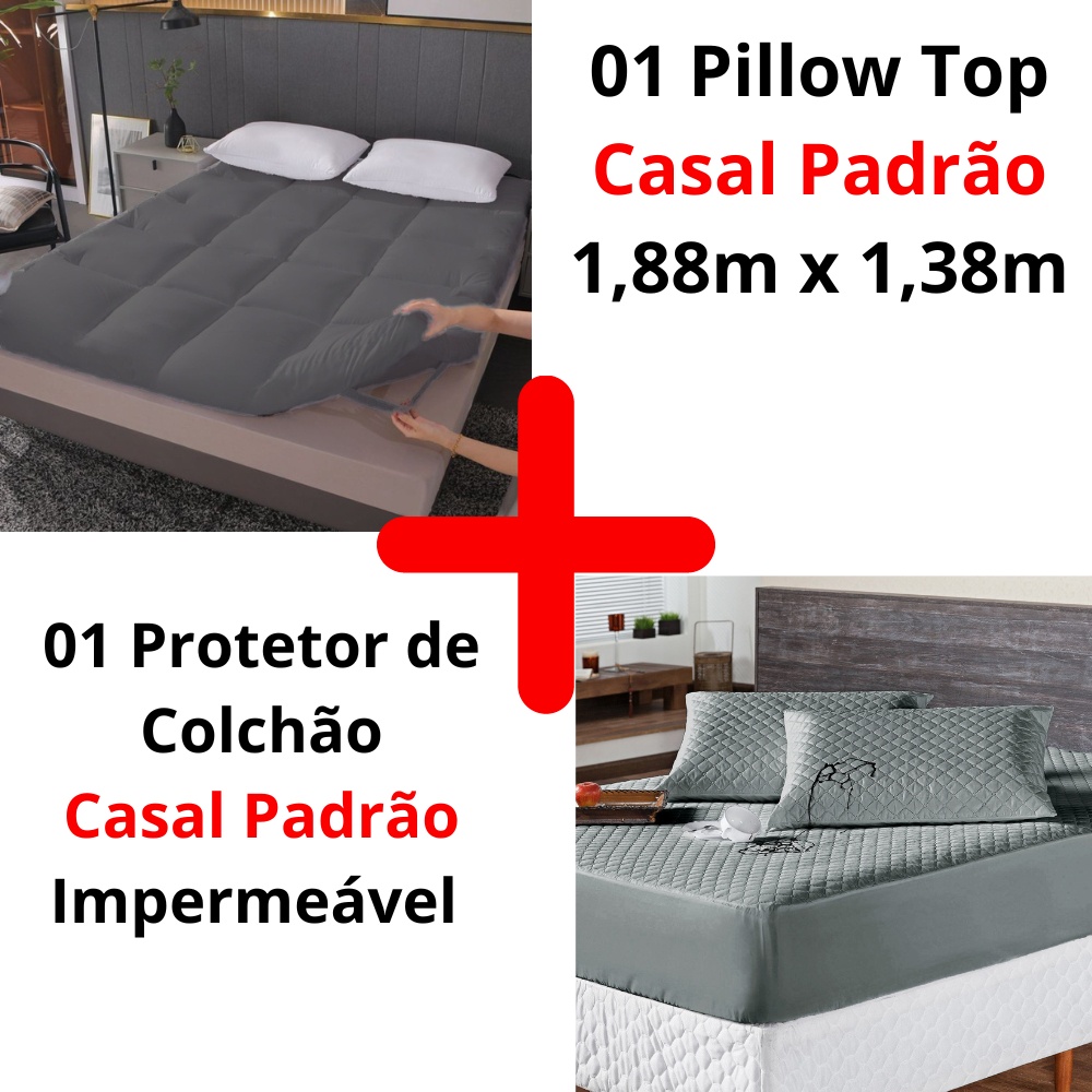 Kit Protetor Pillow Top Casal Box Topi + 01 Protetor de Colchão Impermeável Casal Padrão Box Cores
