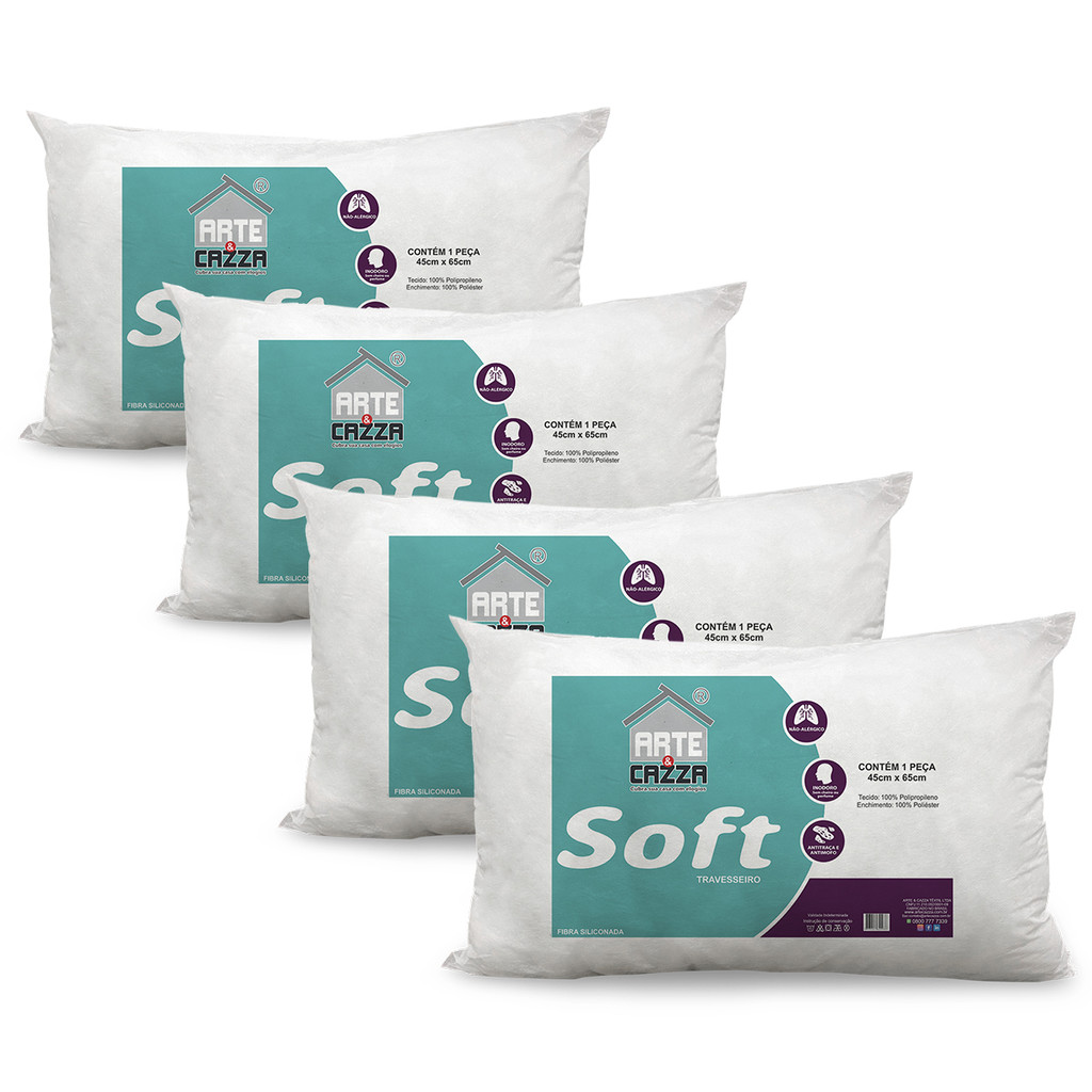 Travesseiro Soft Antialergico Fibra Siliconada Kit 4 Unid Branco