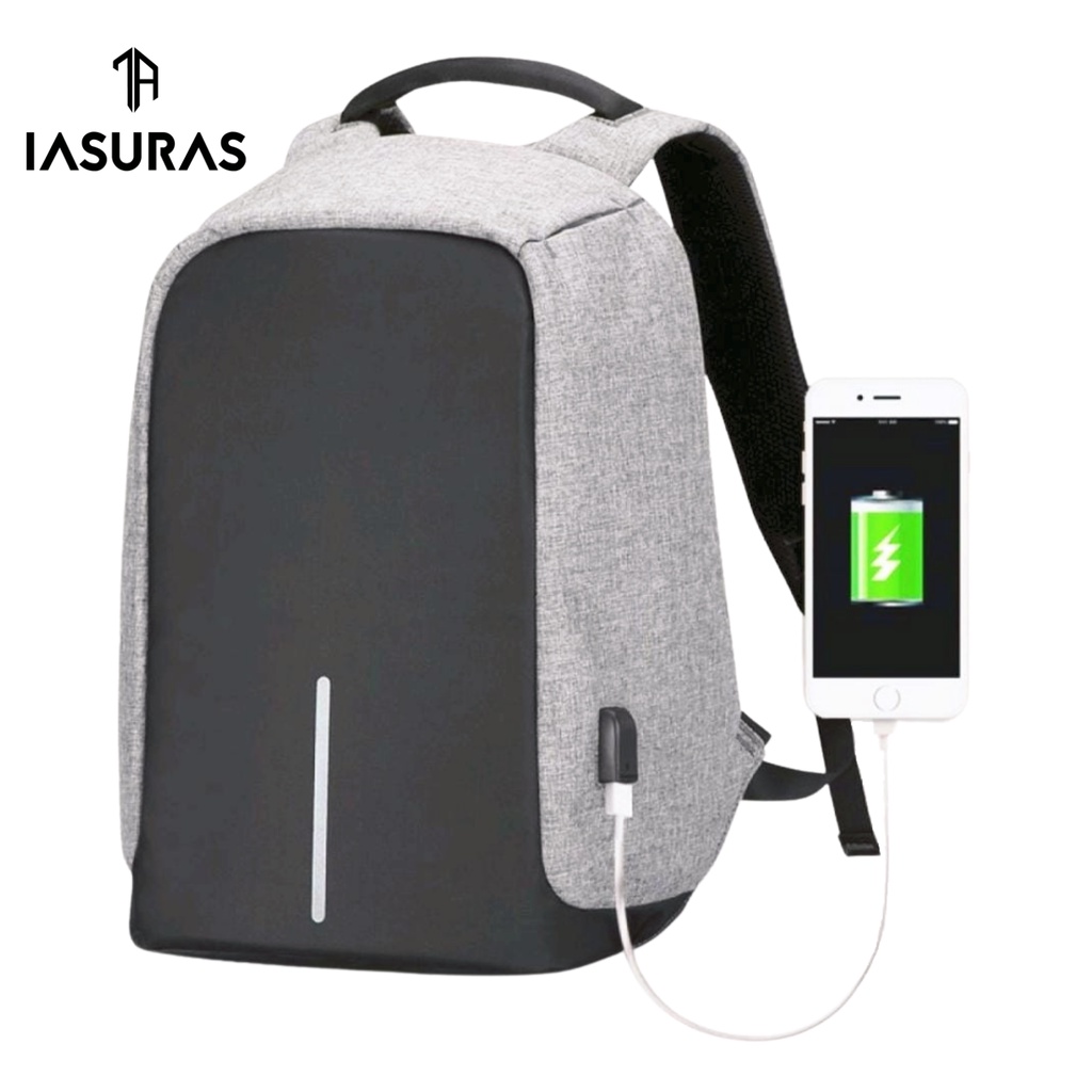 Mochila Anti Furto Para Notebook Impermeável Com Usb Cinza