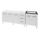 Armário Cozinha Gabinete Pia De 140 cm Carina Com Balcão Cooktop 4 Bocas Branco Jade