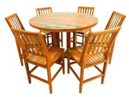 Conjunto Mesa de Jantar Redondo 1,20m com 6 Cadeiras Conforto Madeira de Demolição Peroba Rosa Patina
