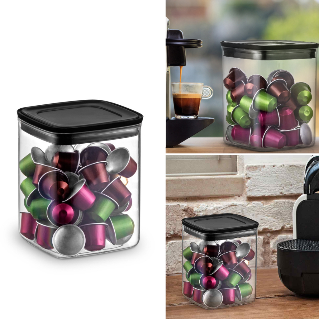 Porta Cápsula de Café Nespresso 3 Corações Dolce Gusto Nescafé Com Tampa Black Plástico Transparente Multiuso Universal Arthi