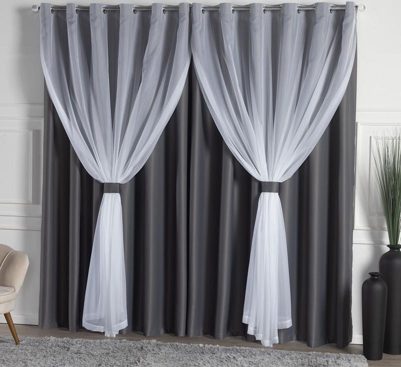 Cortina Solaris Blackout/Bleucate de Tecido com Voil 3,00m x 2,50m Alt. c/ Ilhós Cromado e Abraçadeiras