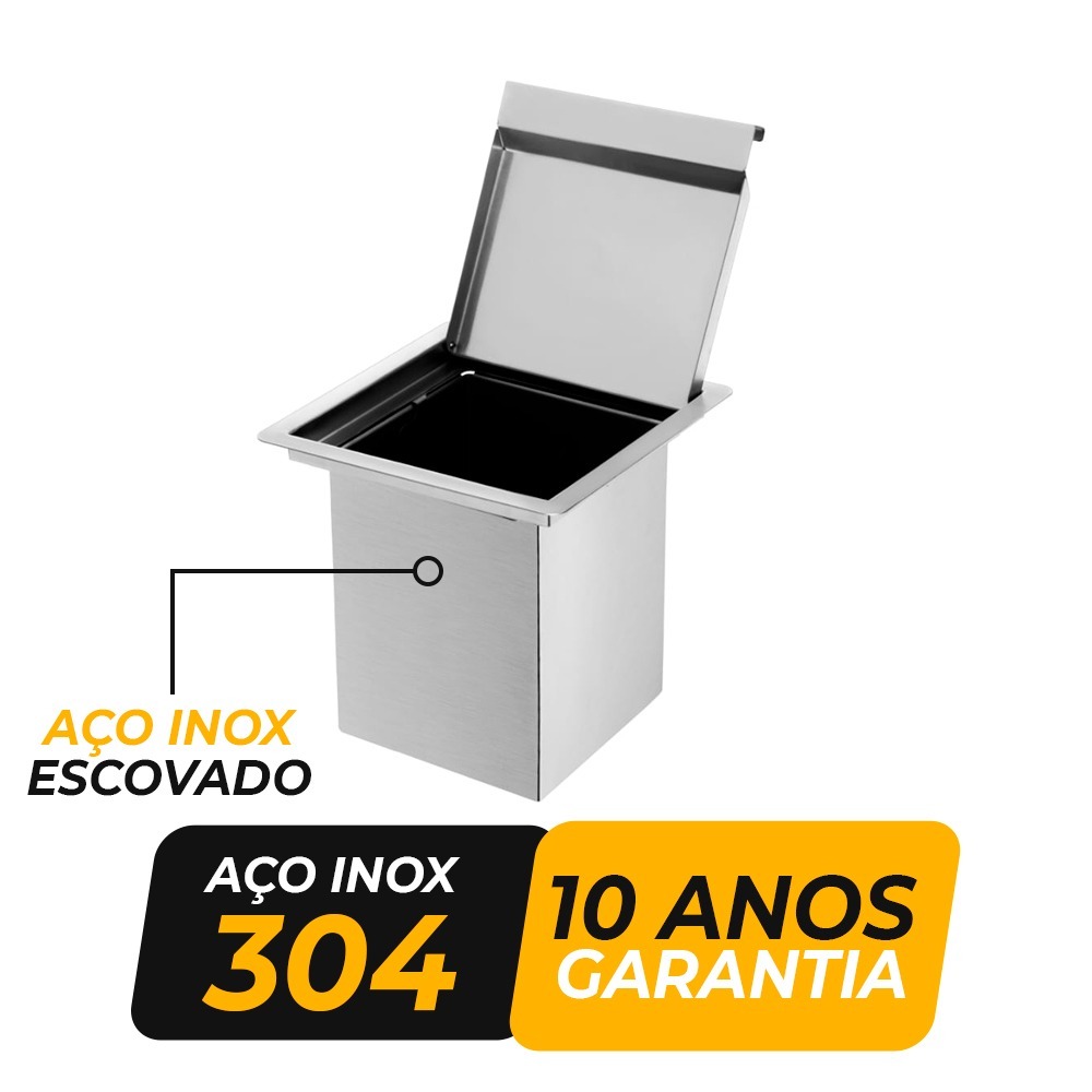 Lixeira Quadrada Pia Cozinha Embutir 5 L Inox 304 Escovado