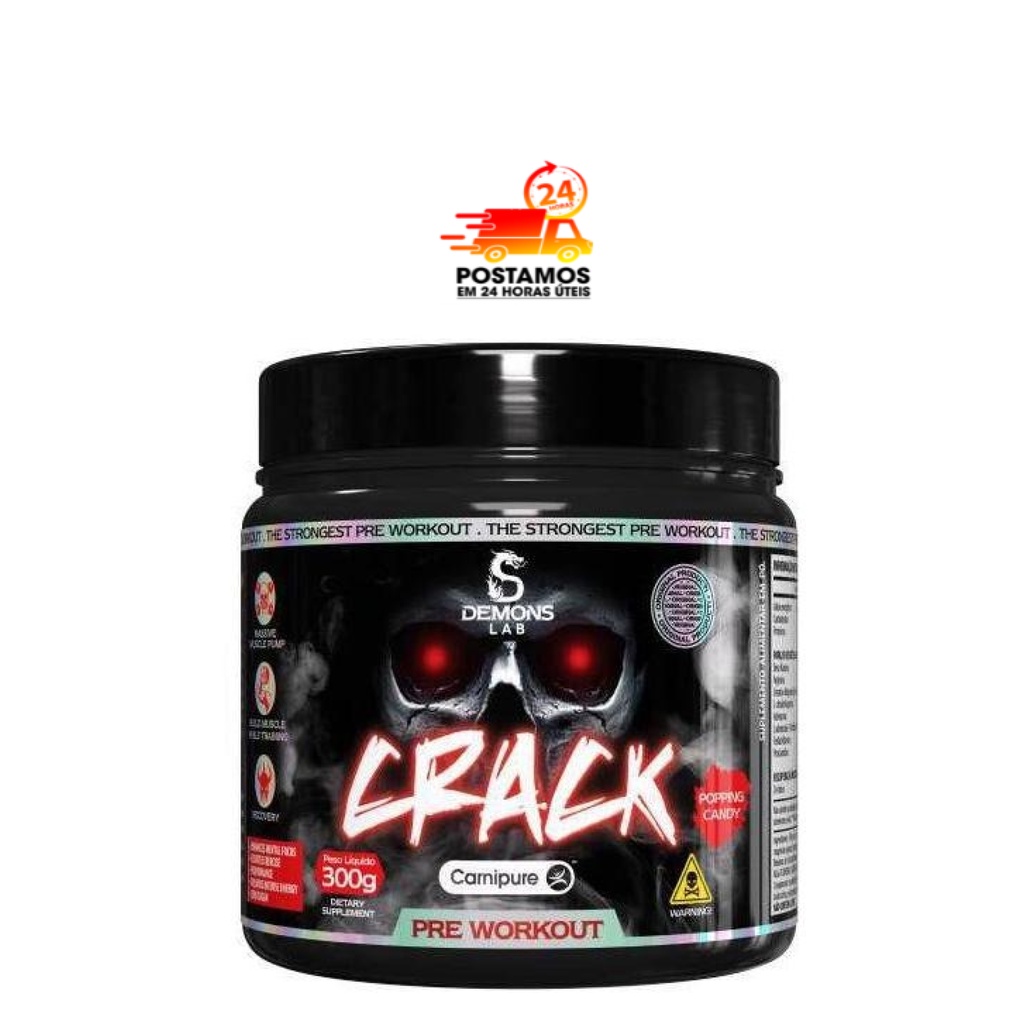 Pré Treino Crack 300g - Rende 30 Doses - Demons Lab - 400mg de Cafeína - 2000mg de Beta Alanina - 2000g de Arginina
