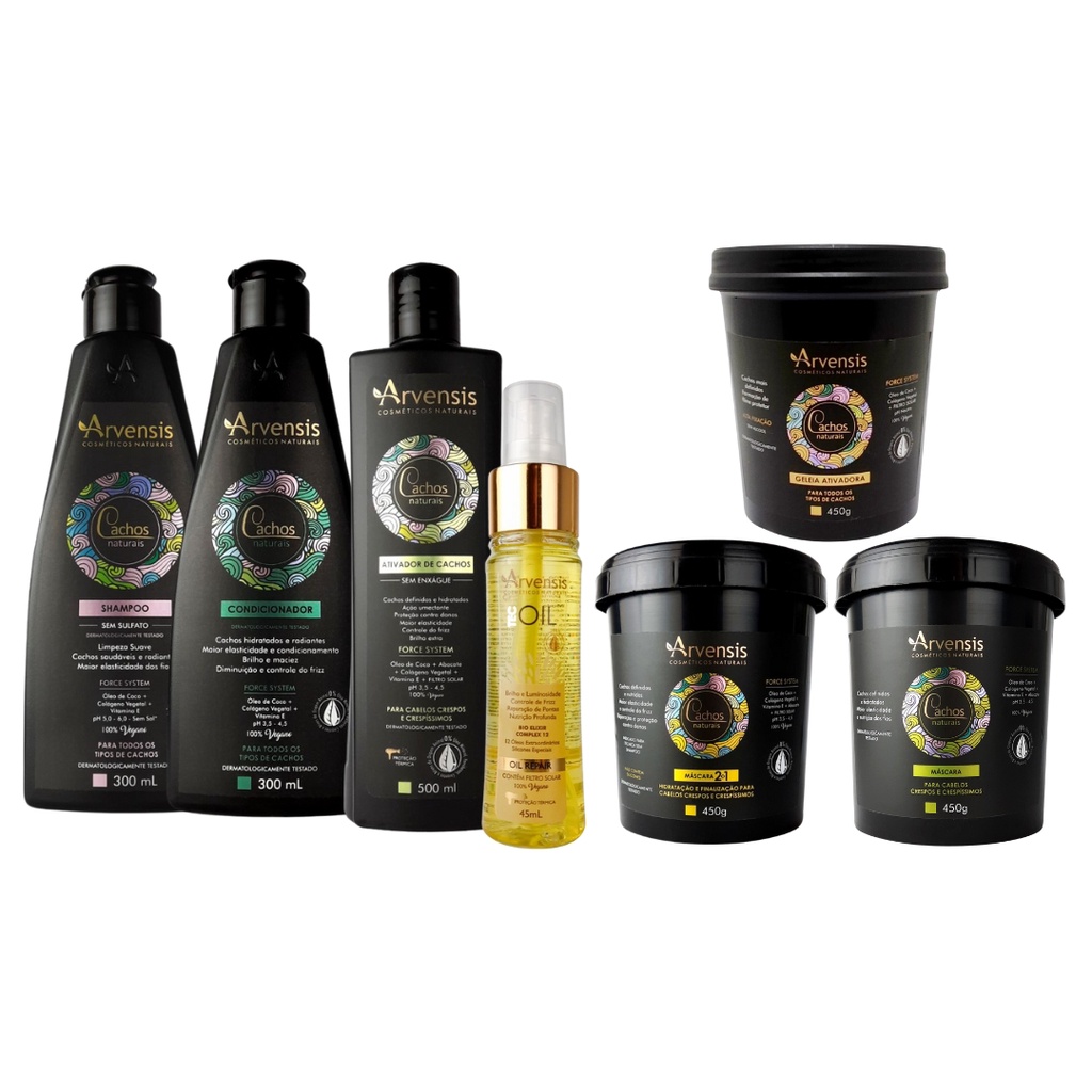 Kit Arvensis Cachos Crespos 6 Itens + Finalizador Tec Oil